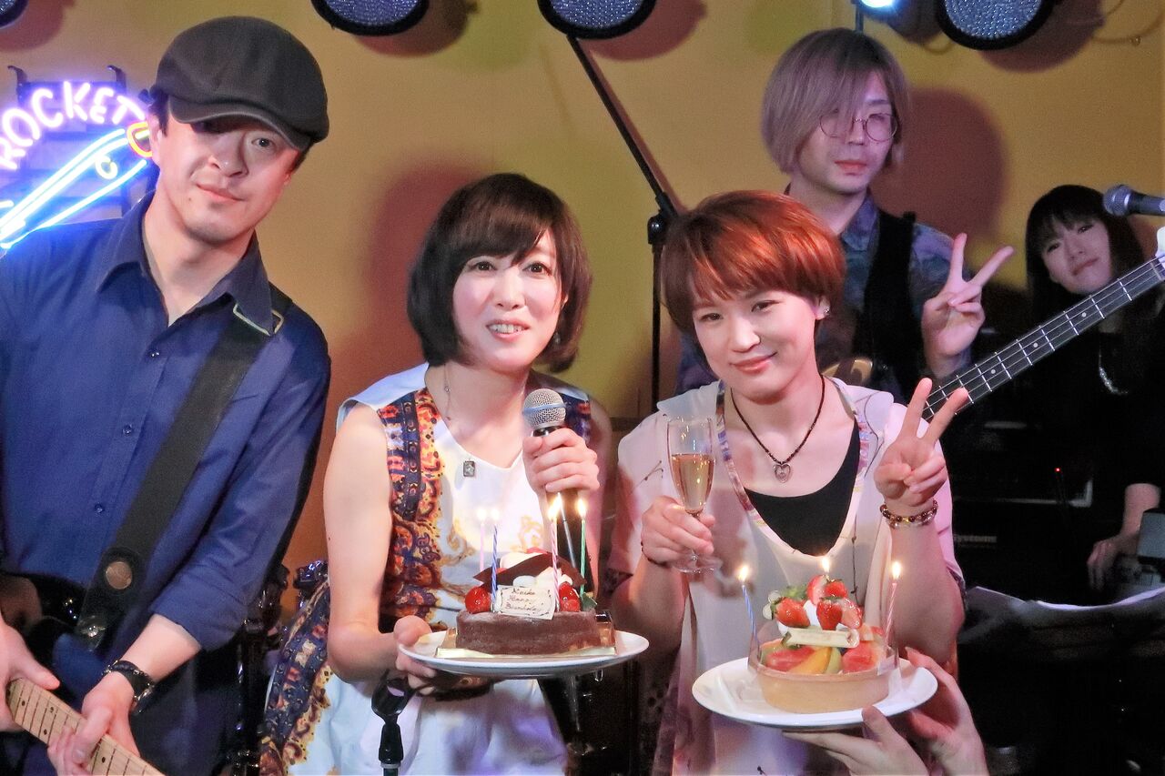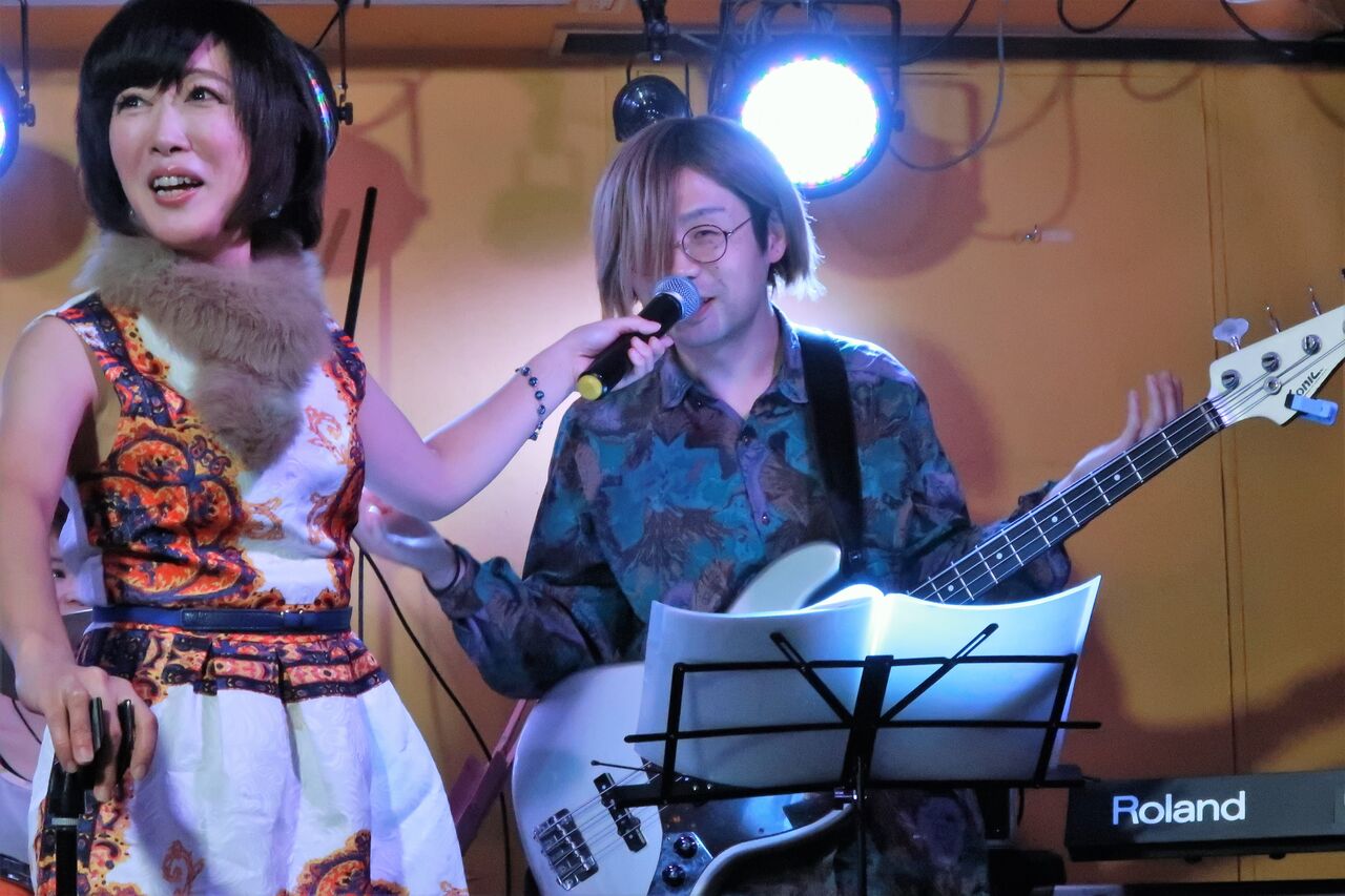 この日のゲストヴォーカルはスイートポップキャンディでも活躍中のりえちゃん。りえちゃんがゲストヴォーカルの時はいつも異様な盛り上がり方をします。ダンスフロアもあっという間に埋まってしまうので、スローな曲の時にしか写真は撮れません。