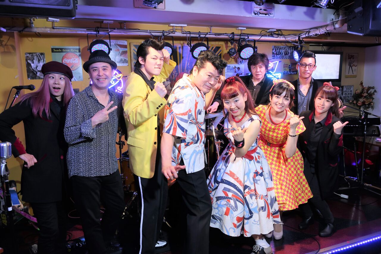 まずはパーティ終了後のGhost & Suzy先生とバンドのみなさんの集合写真から。相変わらずざっくのカメラには目線が・・・って、オイ!