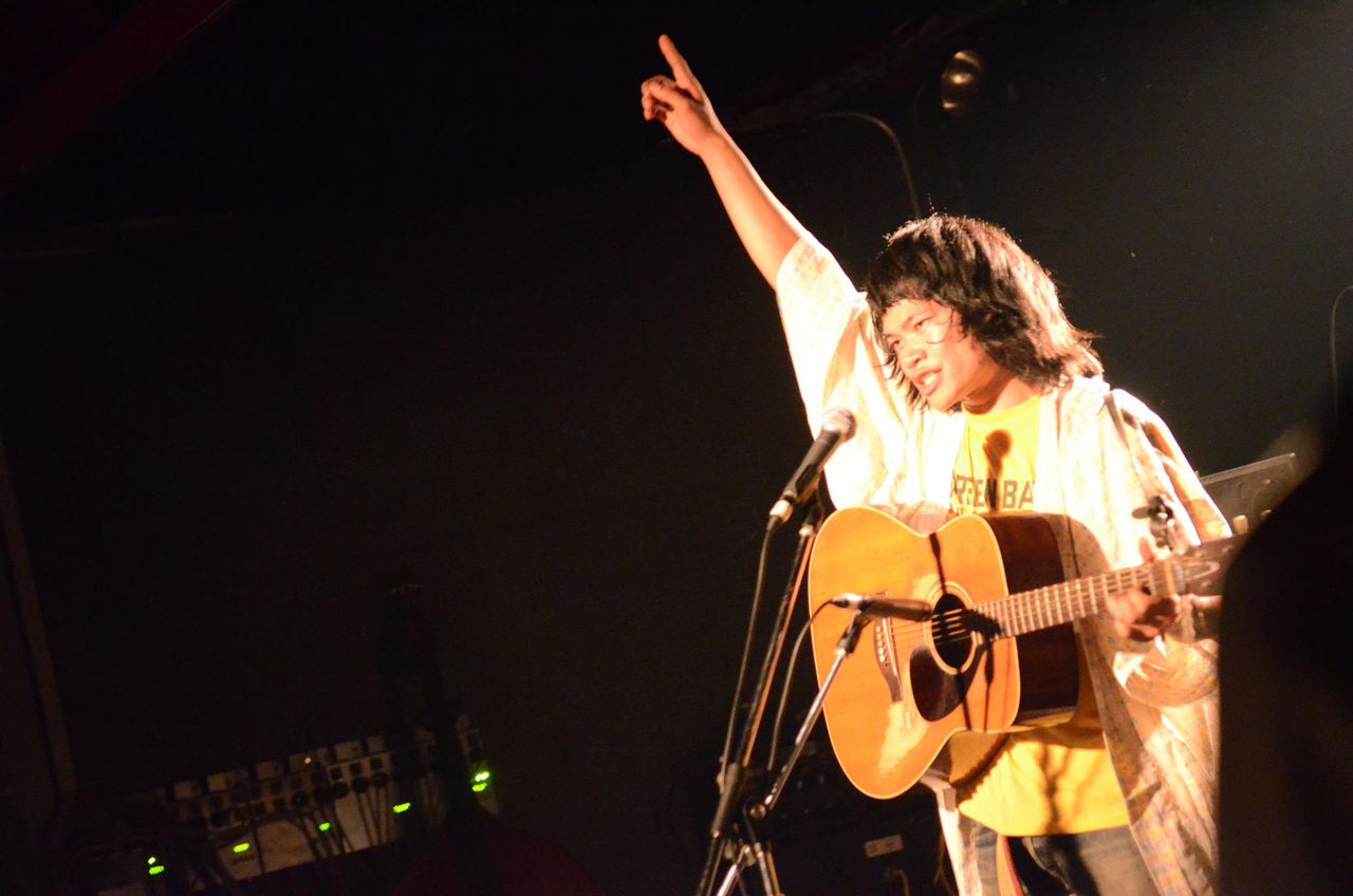 最近のステージ衣装なのか、袴なのか着物なのかよくわからないものを身にまとい、いつも以上に腕をぶんぶん振り回し、客をあおる。お客さんも早い時間から結構入ってくれたこともあり、次第に会場の温度も上がっていく。