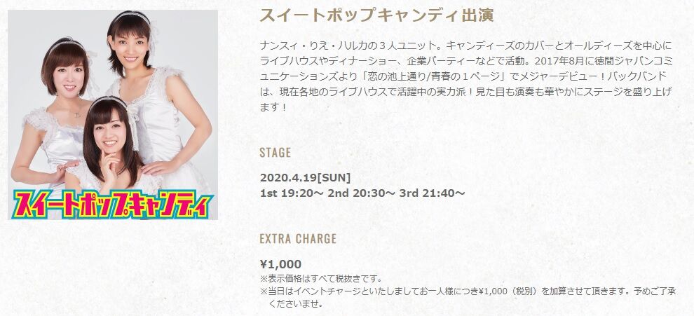 スイートポップキャンディ&NNPの恵比寿JANKENPON出演予定は、3/15(日)そして3/28(土)りえちゃんバースデー祝い。2020年シーズンは赤いバラの絨毯や青い大海原は作れませんでしたが、金色の野だけでも作りましょうよ。みなさま、黄色いアレを持って集合お願いします。